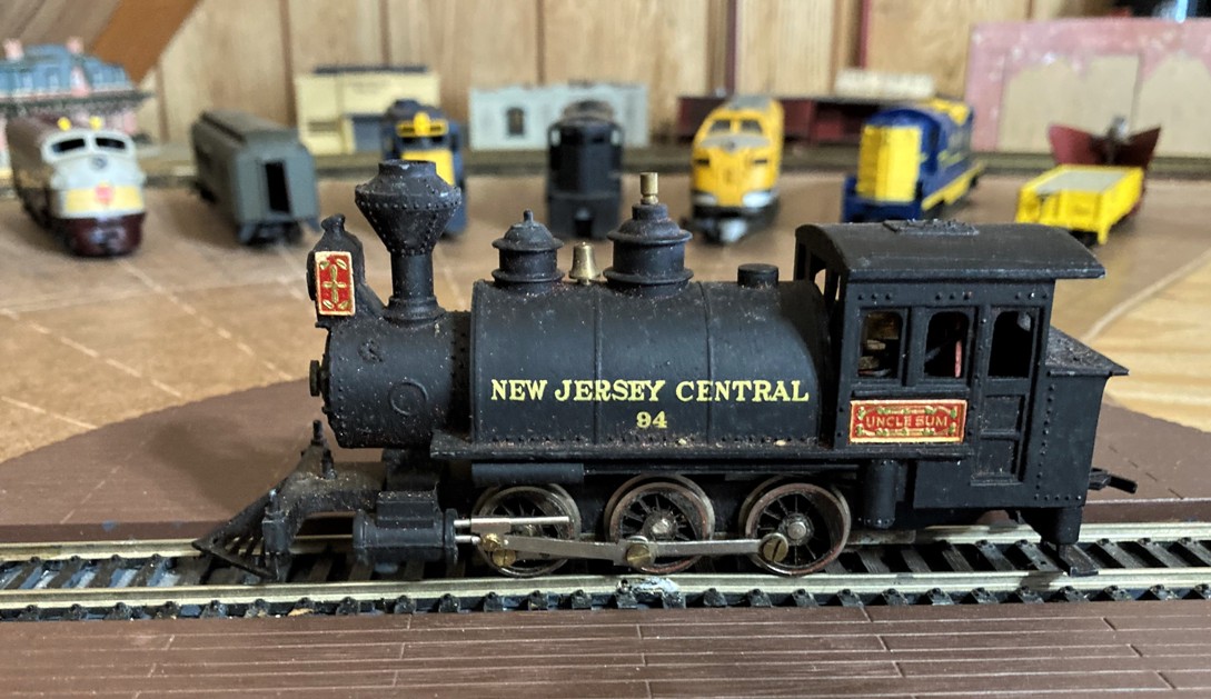 Well my LOTW is a Aristocraft 0-6-0t New Jersey Central with it's original box. I just got it like yesterday and I repaired the box replacing the clear plastic window which was cracked and missing a big piece. Then reattached the hinged box lid. This loco has no faults with its appearance as to all parts are there, and stickers. Paint is good. i haven't yet cleaned it, lubed it, or tested it. That is for tomorrow. This one is a odd one with the name "Uncle Sum'. A mistake type name due to their accent. It should have been "Uncle Sam".
