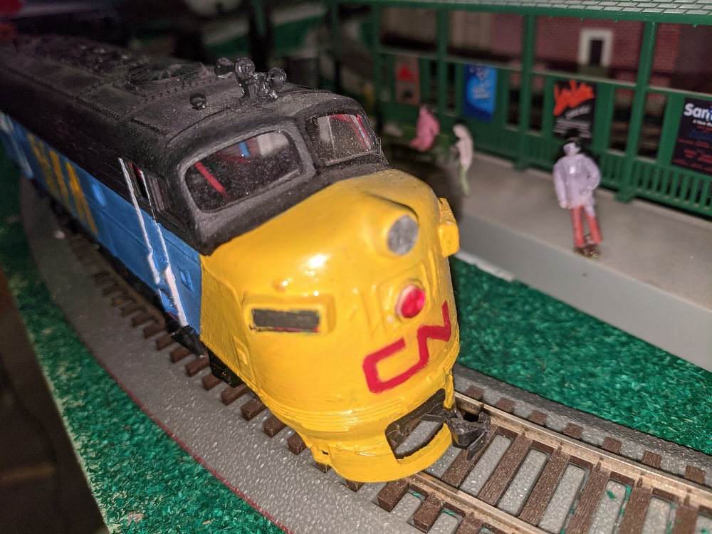 Beautifully hand painted F unit from the Anderson Paint Shops. By any definition, this is folk art, and supremely well done.