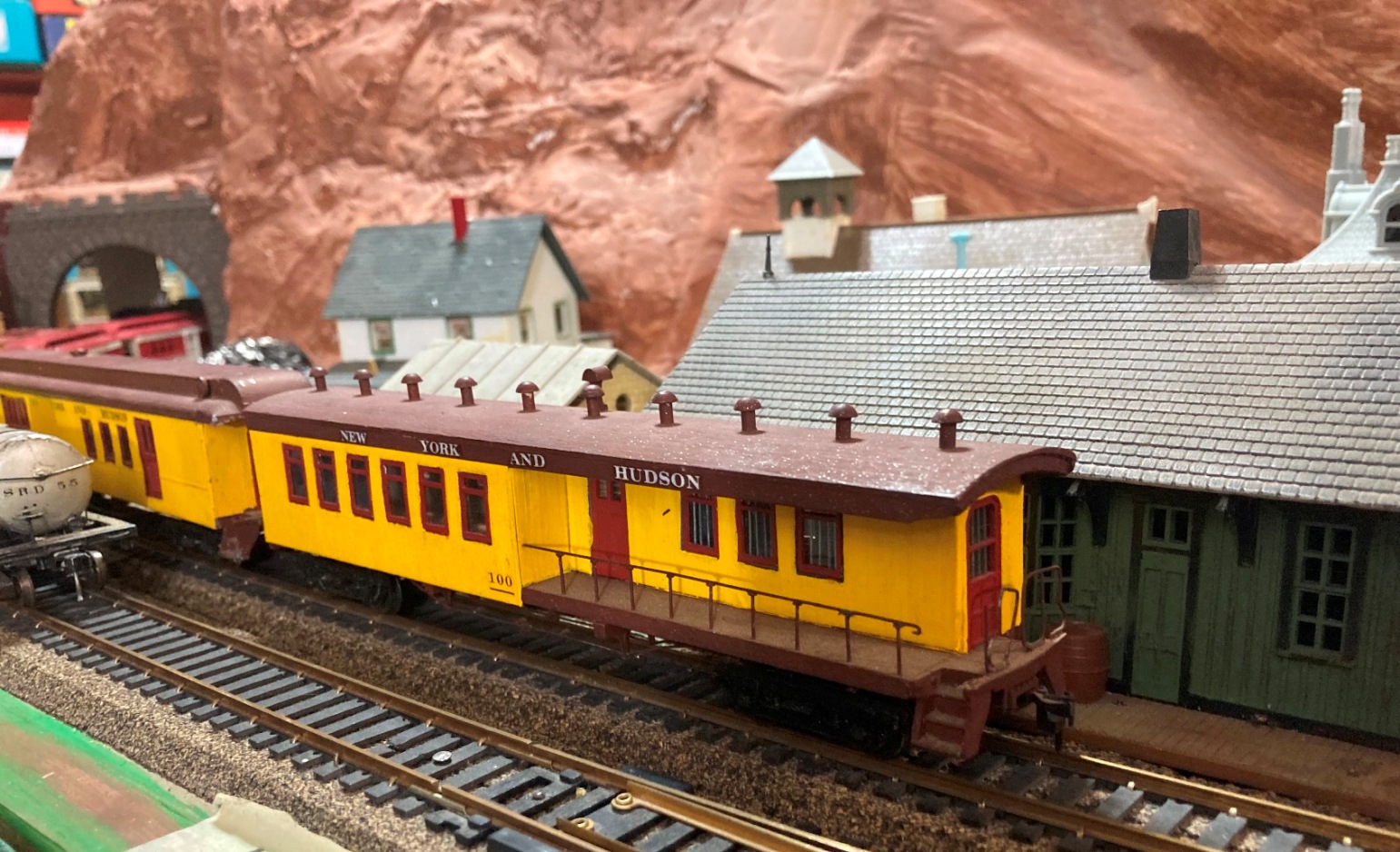 An Unknown all wood Pay masters car I got at the New York Society of Model Railroaders club train show last Saturday and along with it an all wood combine. both are painted in the same scheme and lettered for the NEW YORK AND HUDSON RR. frank