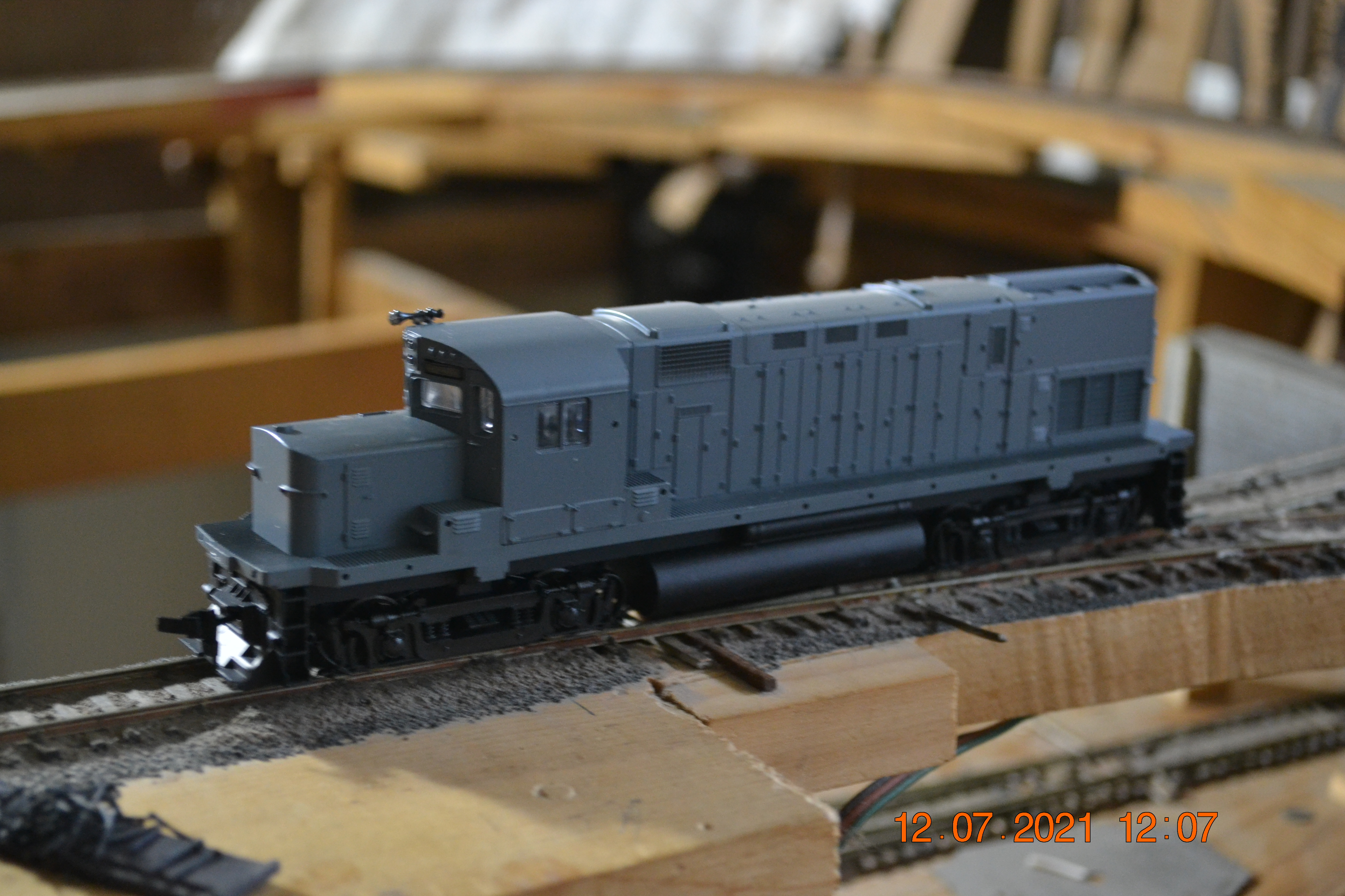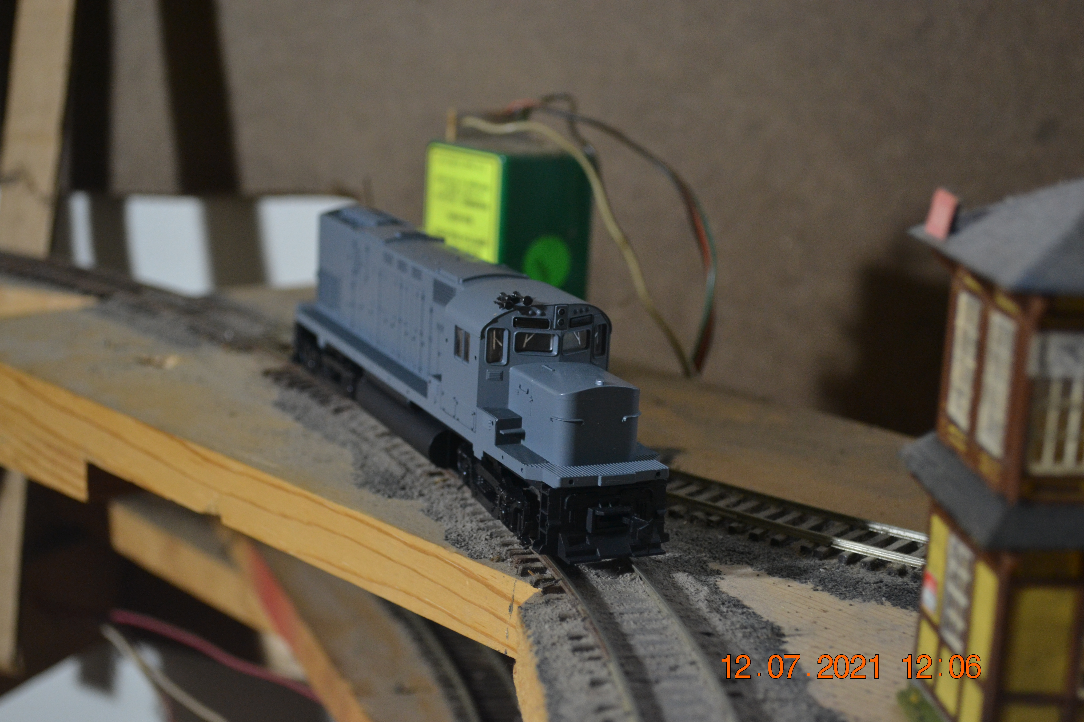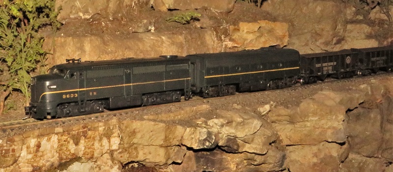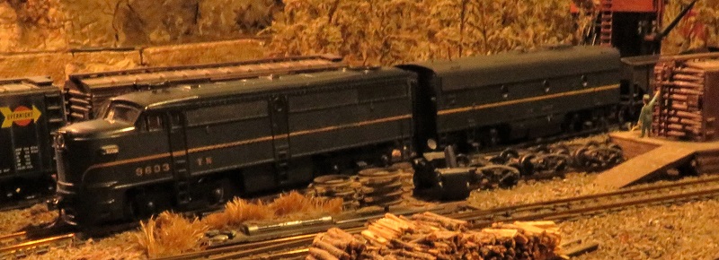 My LOTW is an Athearn F-7B (Tabor and Waldo 9603B). A while back, I got a Train Miniature Alco FA. It had a mechanism made with Athearn parts, and pretty much like an Athearn, except it had no flywheels. It turns out that the flywheels are extremely helpful in creeping down a steep grade with a train pushing from behind. The engine did poorly on the downhill, unless it was paired with an Athearn F-7 with a flywheel to smooth out the tendency to lurch downhill. I had an F-7B painted for Chicago and Northwestern, to match a CNW F-7A, but I wanted one that matched the paint on the FA. At the last swap meet, I got an F-7B shell for $2, and painted it to match the FA. Now, I just swap shells to run the F-7B with either the FA or the CNW F-7A.