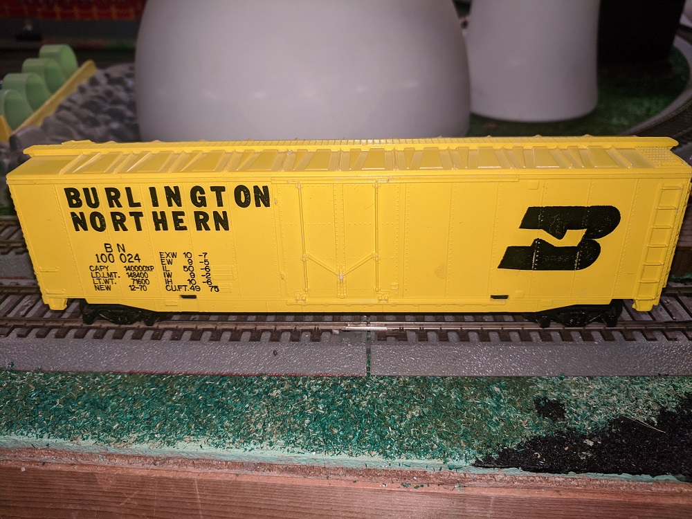 quote: quote:I finally got one - a rare Tyco yellow Burlington Northern 50' box car, scored for under 12 bucks on Ebay!