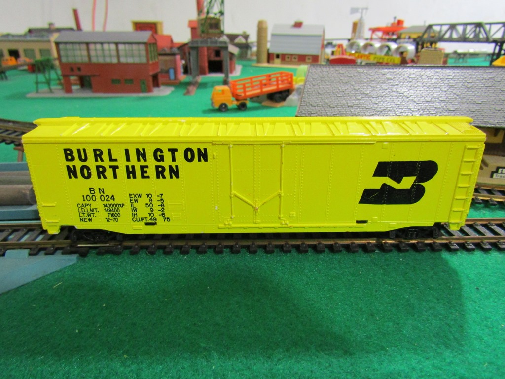 I finally got one - a rare Tyco yellow Burlington Northern 50' box car, scored for under 12 bucks on Ebay!