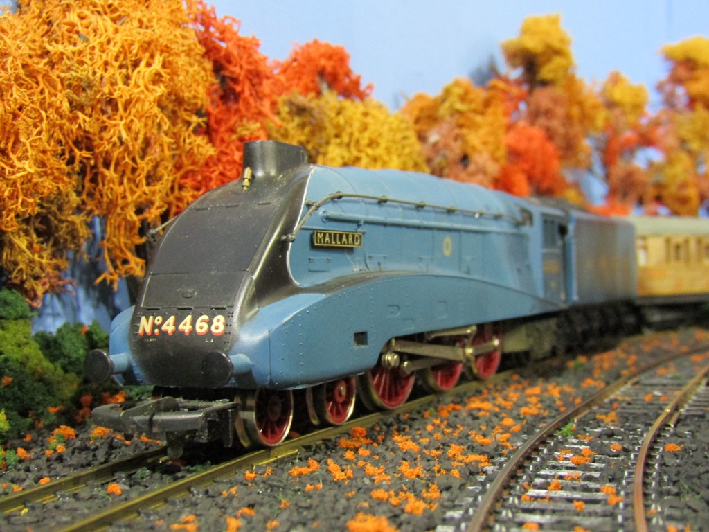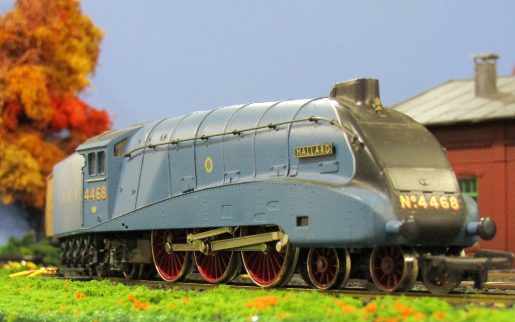 An HO-Scale locomotive I never thought I'd own....the Mallard! It is a tender-driven Hornby steam locomotive, and after getting the corrosion off the contact wheels and lubing the gears, it runs stupendously.