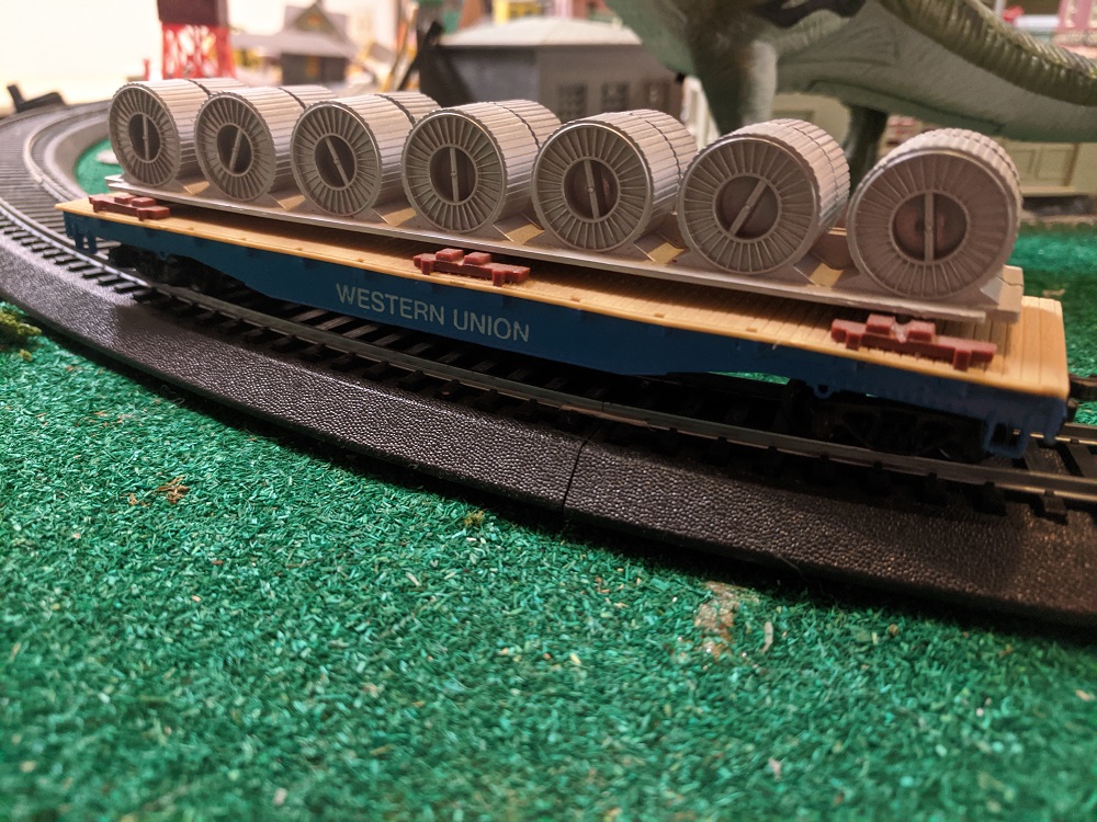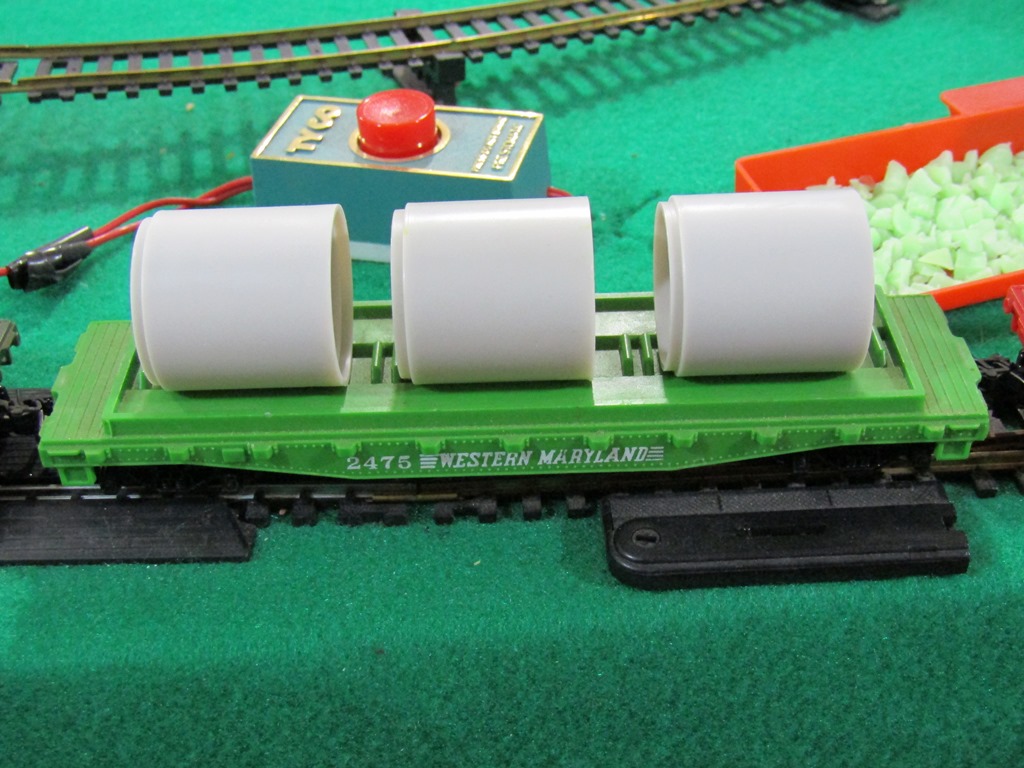 quote:A rare variant of the Tyco Western Maryland flatcar - it is light green with white lettering.