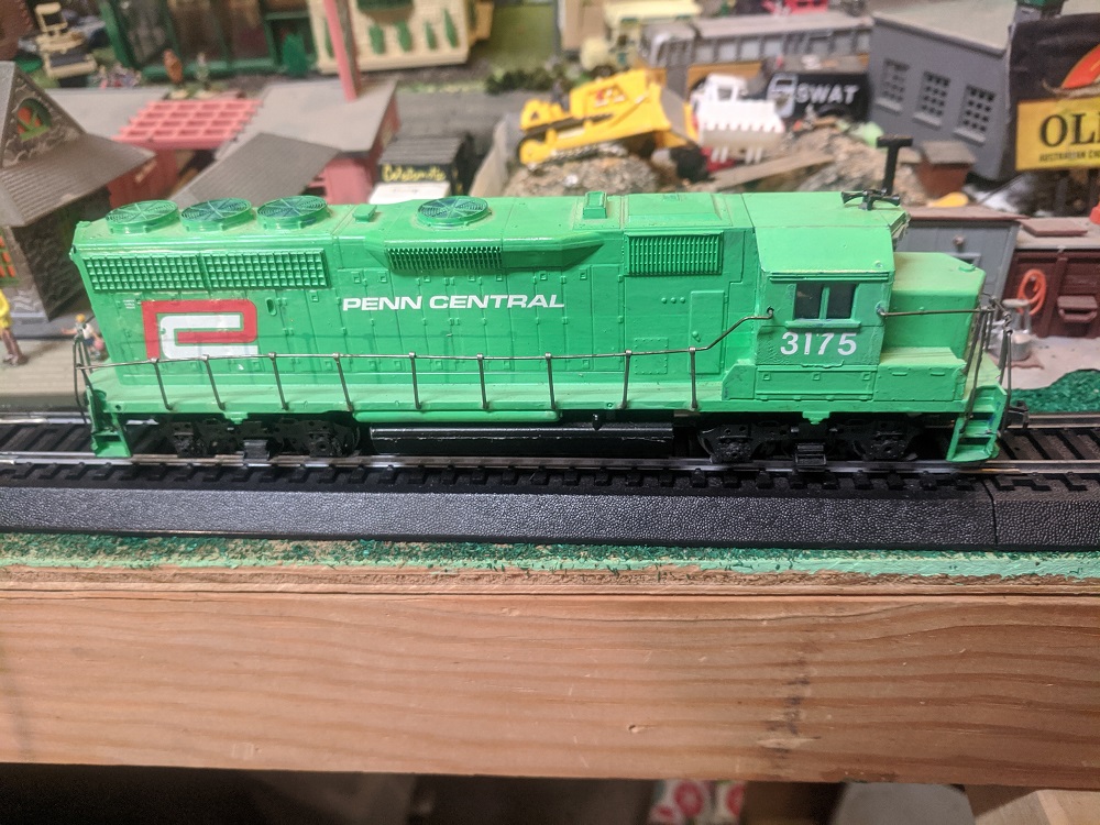 And my contribution for the week, if it moves salute it, if it stands still paint it. I like the funky green that Tyco did, that never existed, but wanted something that would pull slow and smooth, so this Athearn BB fell under the brush.