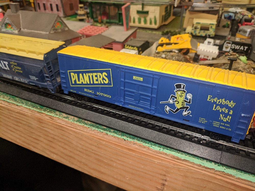We all know the familiar Tyco icon Planter's car, JMO, one of the best bill boards ever done, but when this AHM (? Made in Slovenia) piece popped up, I had to snatch it for 15 bills, even though I have sworn off collecting.