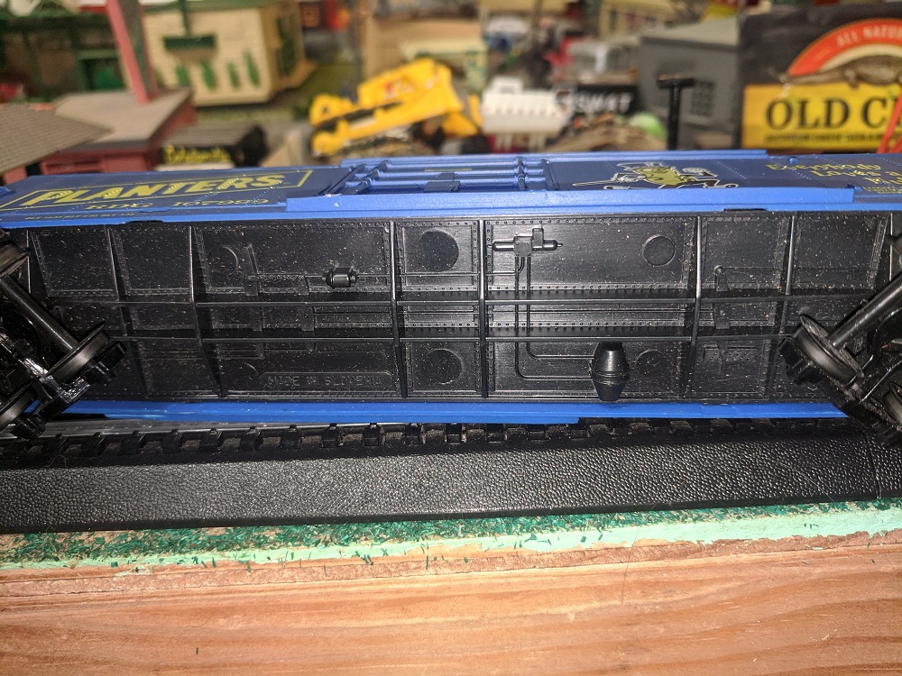 I know that this is a Planters painted car, but did all you Penn Central nuts know this is a model of a PC prototype? The corner gussets near the plug door give it away. If I recall correctly, these were originally in the LifeLike line. Slovenia would be where Mehano's factory is located. This is definitely NOT AHM. Slovenia didn't exist when AHM went out of business, cars imported by them should be marked Yugoslavia.