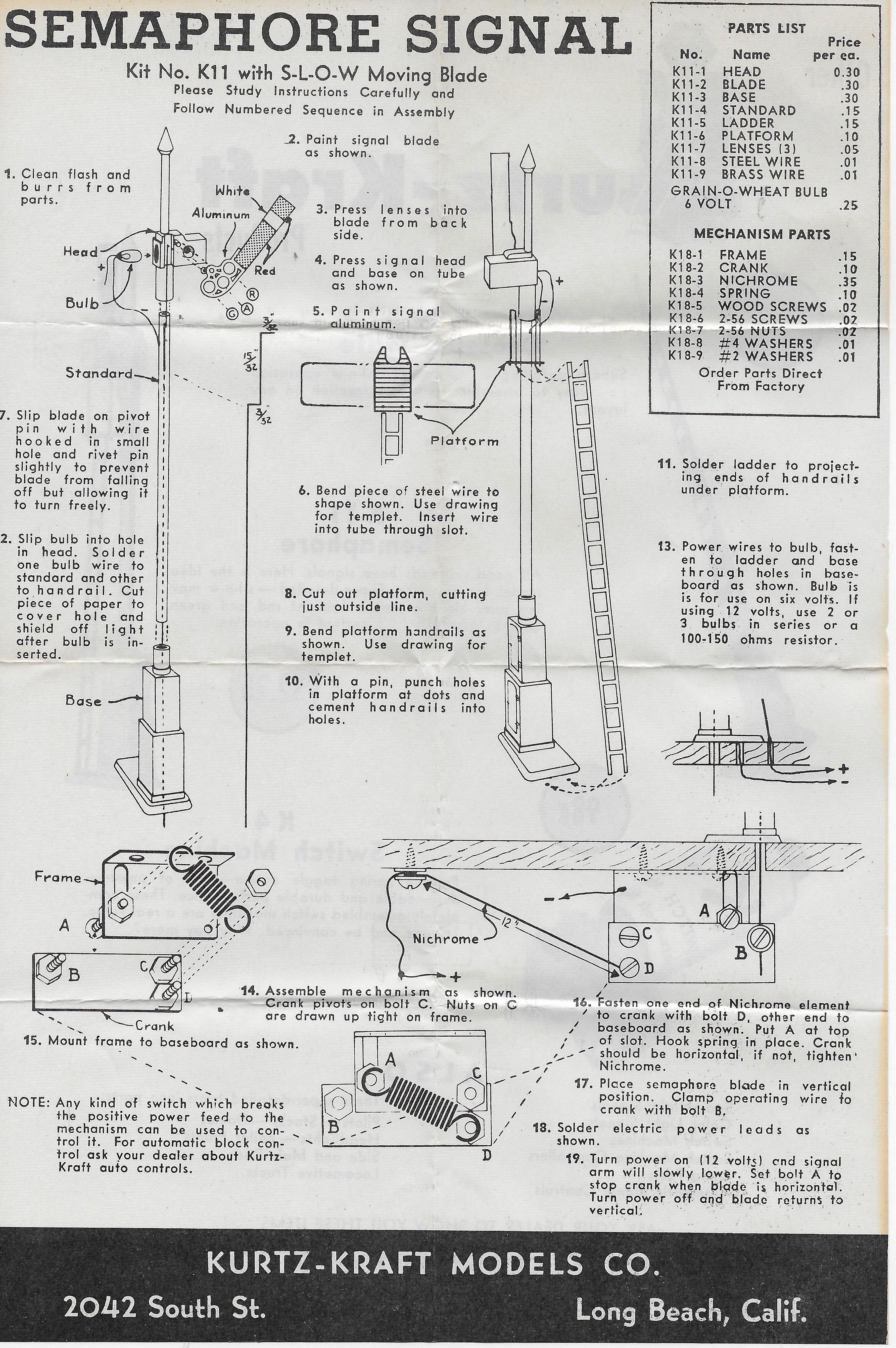 That semaphore that uses a heating element for a motor would probably not be popular with your fire insurance underwriter. Seems okay inside a toaster, but I have my doubts under a layout.