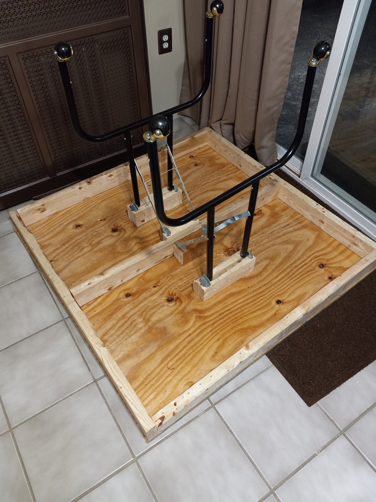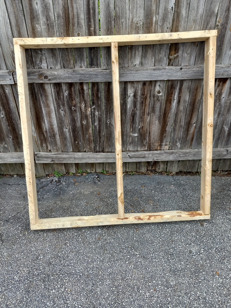 I then cut the 2x4's, assembled a frame, and attached a 4x4 cut sheet of 3/4" plywood to it. Shoutout to Mom and Dad for lending me a hand with the building process.