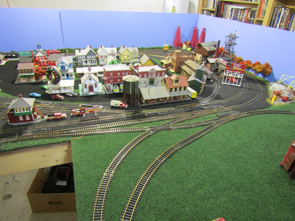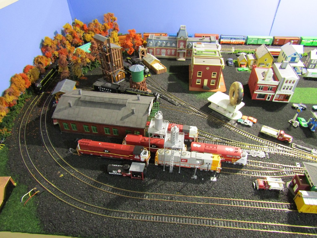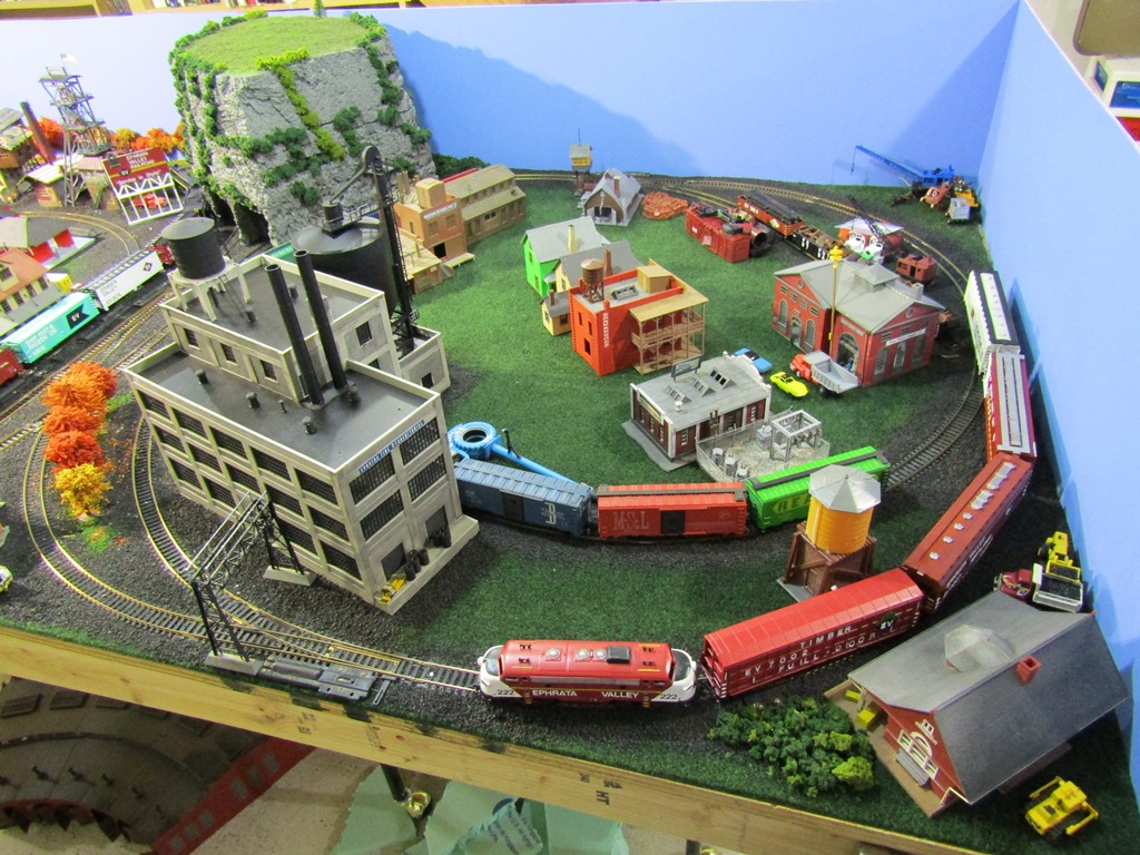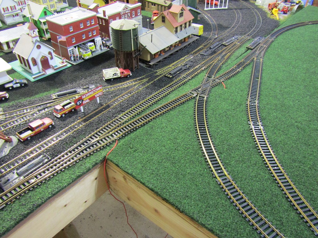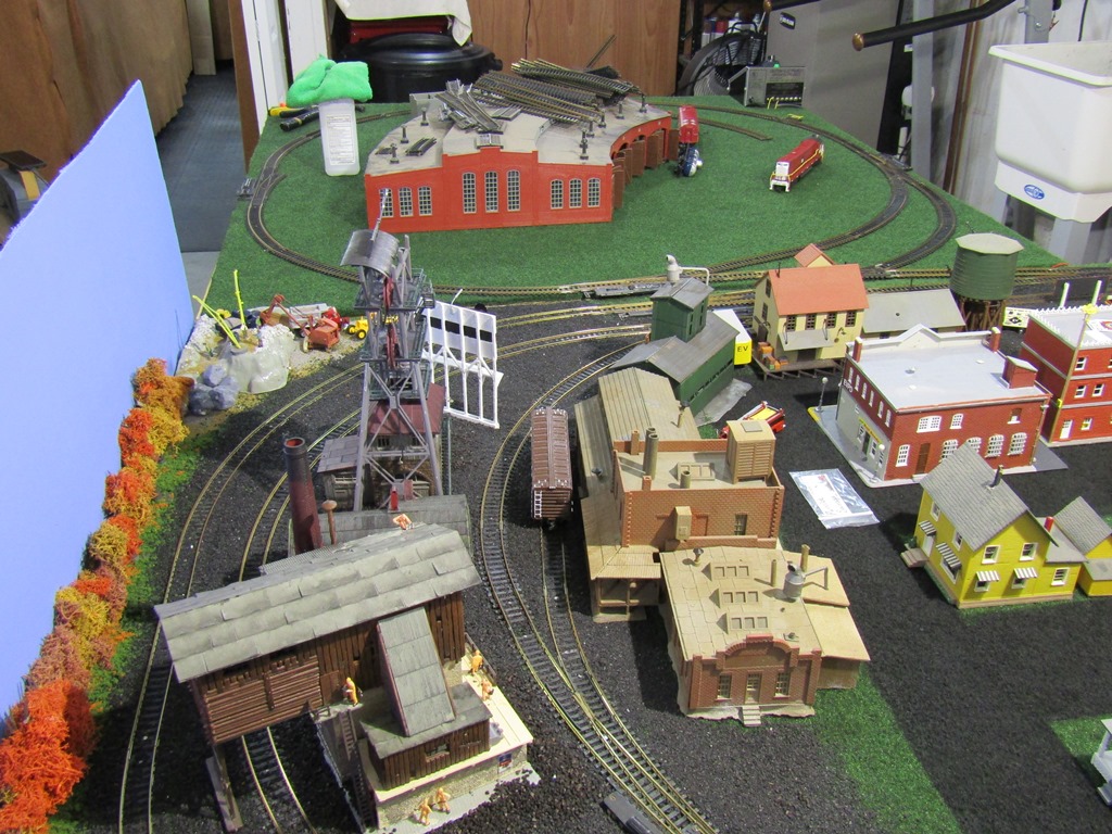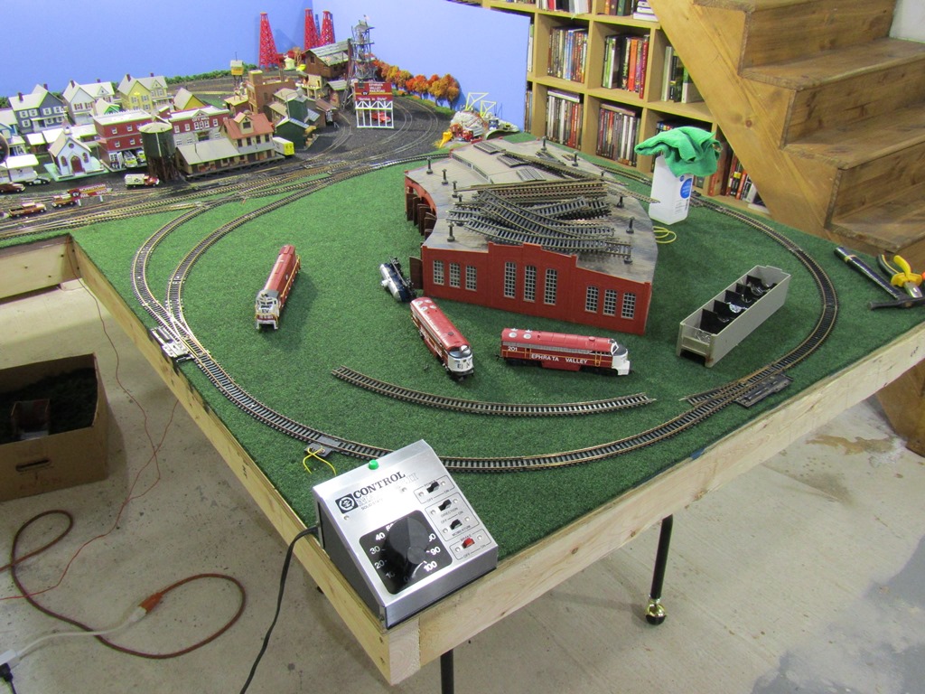 So long to the roundhouse idea...because the 4x4 part of the L-shaped Ephrata Valley Railroad will be industrial, featuring 3 sidings for 3 different industries (Spartan Tire Manufacturing being one, Putnick Salvage yard being another, with a 3rd to be determined.) There will eventually be a road that crosses the 2 tracks and enters into the industrial area (center of layout,) where there will be a water company and electric power station, for the town of Ephrata.