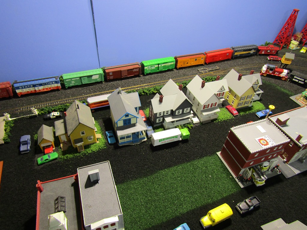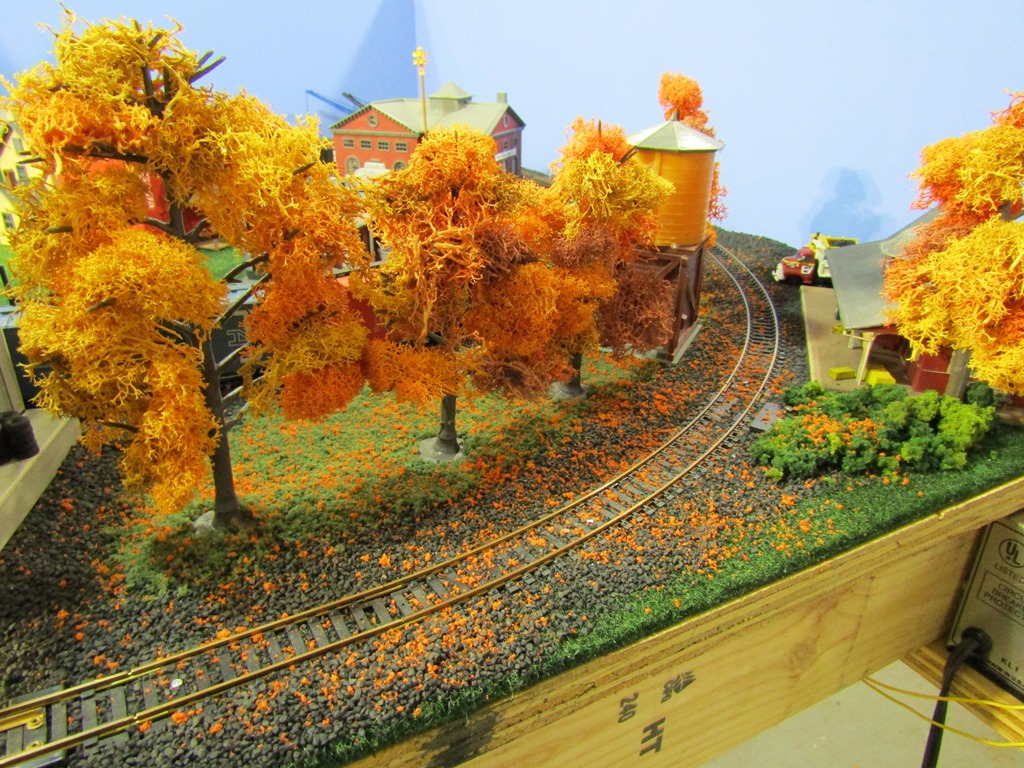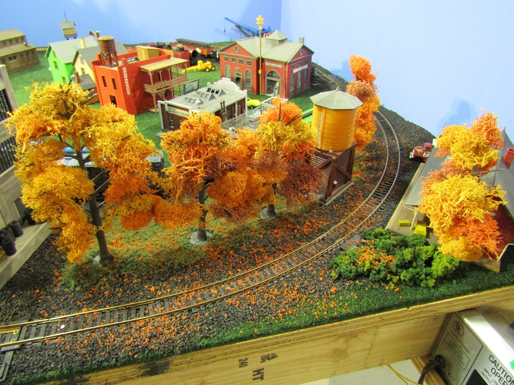 I added a bunch of trees to this area, transforming the scene into a crisp fall setting right beside the new "Skippack Station" and water tower.