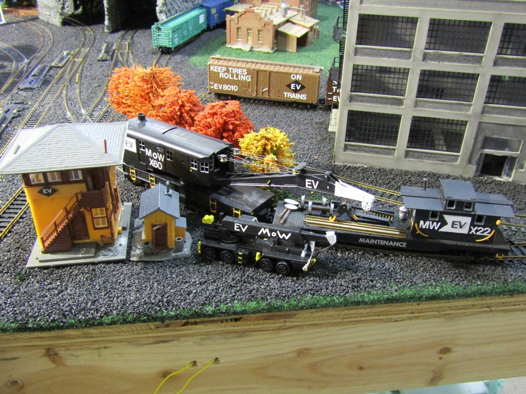 The perfect place to store/display an EV wreck crane when a train is not running between both layouts.