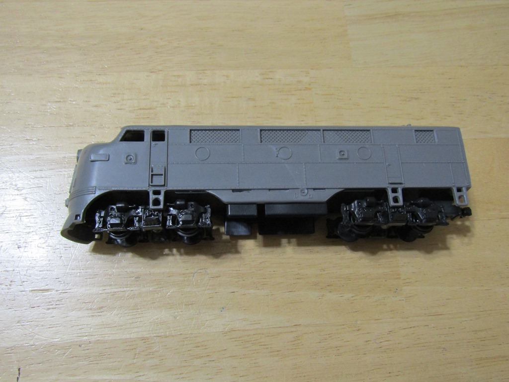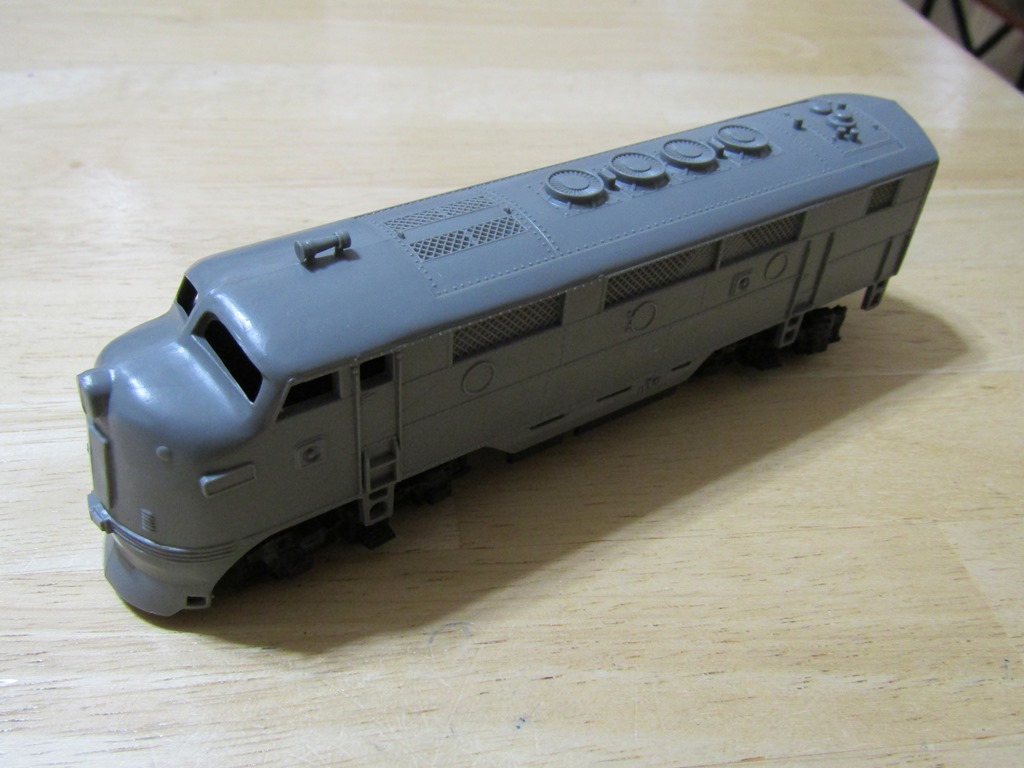 I found this at a train store yesterday and bought it for a good price, but there are no markings on it. The shape of the shell leads me to believe it is a Gilbert or Varney F2/F3? But the dummy chassis has a place for a coupler box, which can't be used as there is no opening in the pilot of the diesel. Depending on the manufacturer of the shell, were there ever any undecorated shells produced?