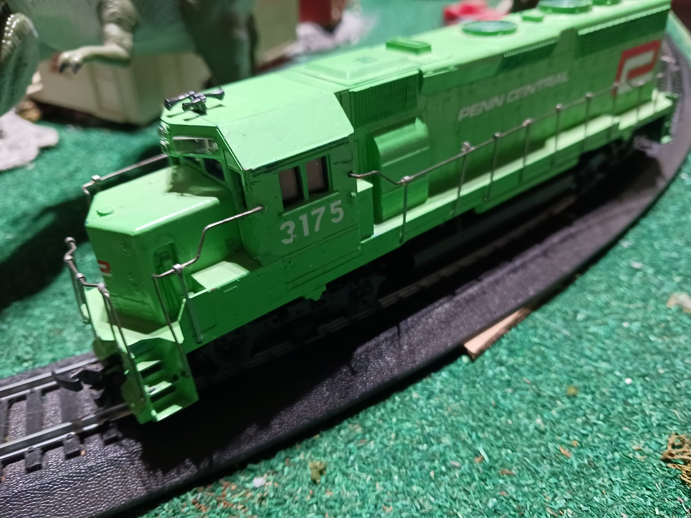 Clearly not a Tyco piece, but inspired by the green pea soup color of Tyco units in PC fantasy colors. My interest in the PC dates back to when, as a young man, I favored the idea of going to work on the railroad. However, the troubles of the Penn Central threw all those ambitions into doubt.