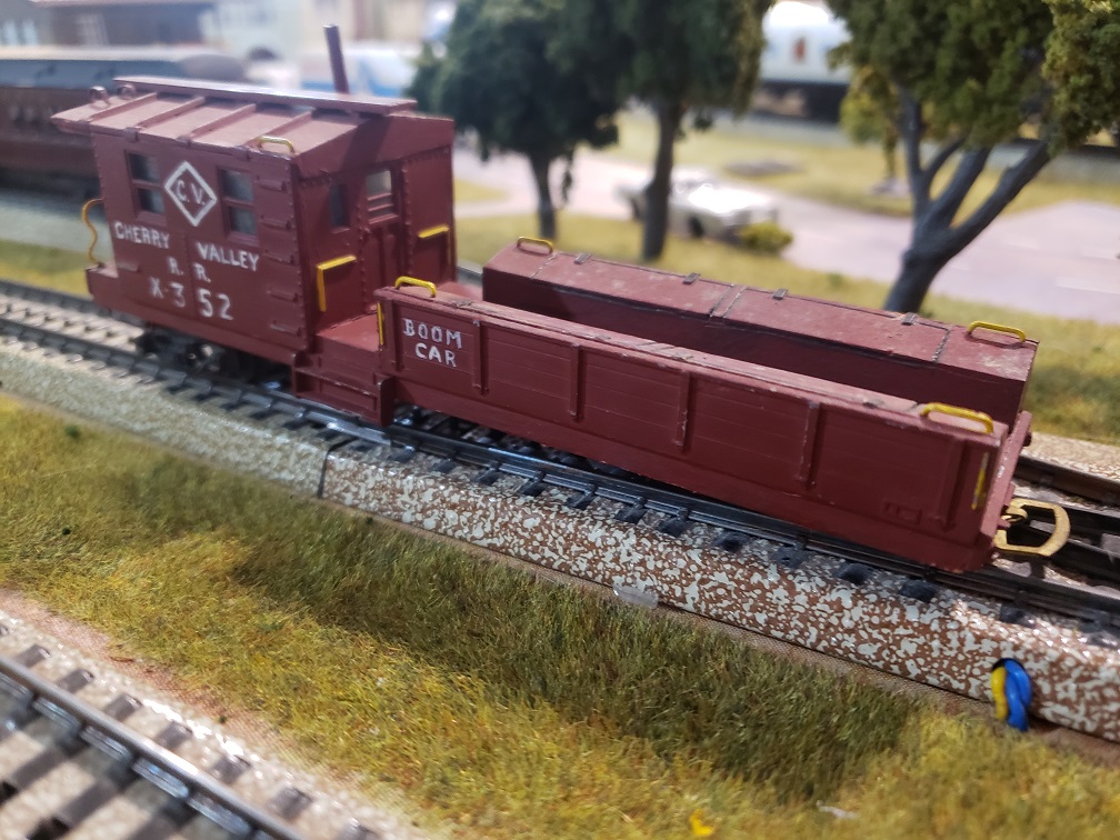 Well, after looking at Ho Seeker for an hour and a half, I finally found them! The boom car/work caboose was made by Red Ball. The gondola is a A-C Models kit that appears to have had its car sides replaced (3 plank originally, now 5 plank)