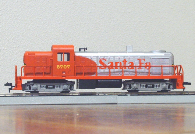 I believe this red and silver Santa Fe RS-2 could be either AHM or Model Power. Both imported the same Mehano Yugoslovian-made model. AHM had it first and later it was in the Model Power line.