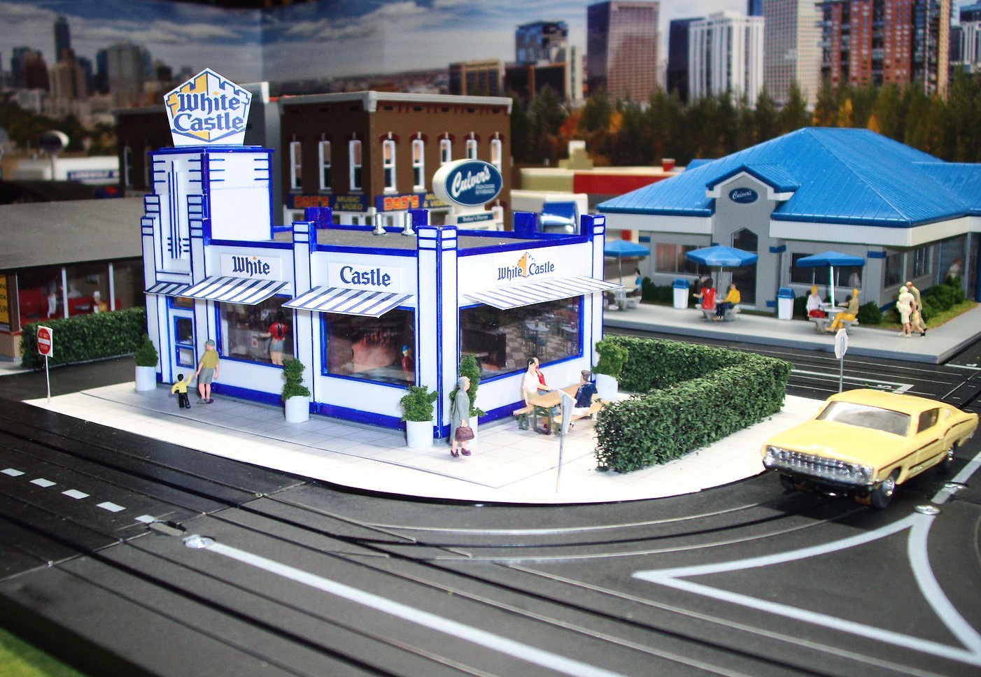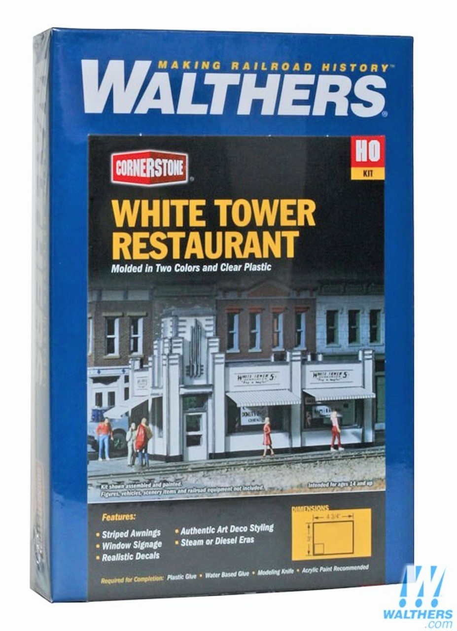 The Walthers Cornerstone HO Scale White Tower Restaurant is patterned after one of the first fast food chains in America.