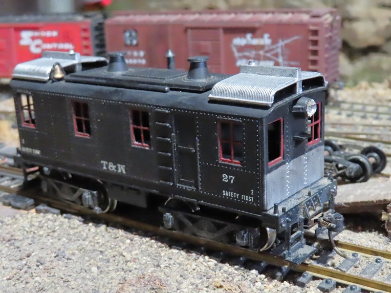 My LOTW is this MDC Boxcab diesel. I've had it for a long time and like it, but was a bit dissatisfied with the ends. They were plain black and disappeared into the shadows. I'd thought of putting chevron stripes on the end, but I'm not so good at delicate masking and painting of fine details.