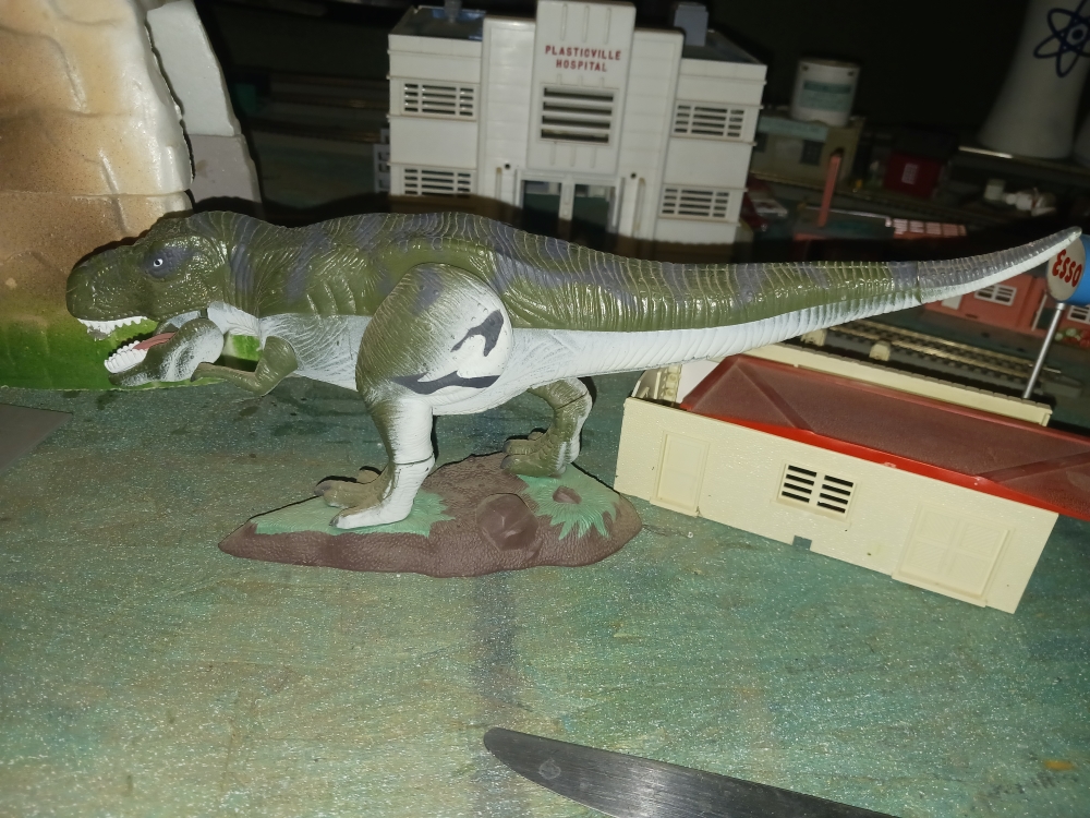 The Lost World: Jurassic Park Electric Race Set: This 1997 set features a track where players race vehicles while trying to avoid a large, interactive dinosaur. It often includes two themed vehicles, like the Nissan pickup trucks.