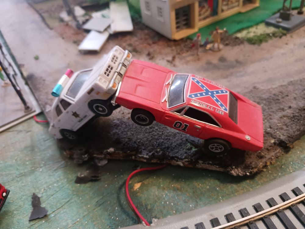 WKS's posts of slot cars reminded me of my various attempts to incorporate slots into my early Tycoish attempts. The essential problem was the darn things had two speeds: 300 mph and off. Also, the build quality was extremely poor. The Dukes of Hazards ended up as a static accessory display in Armodilloville.
