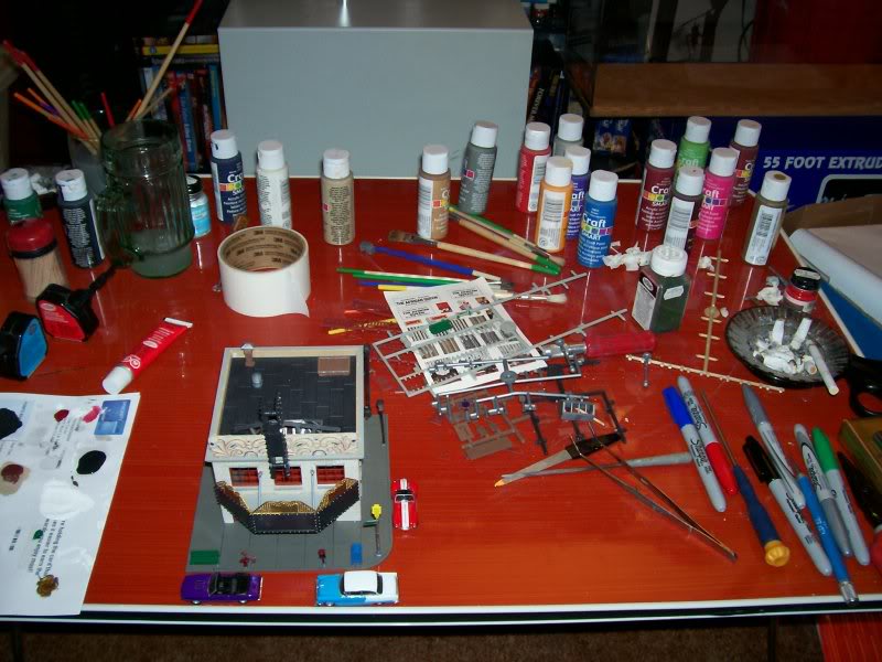It took me about 8 hours to build, but the relaxation was more than worth the evening spent building it. I wanted something to do to unwind as Alicia napped on and off for the day and so I put my little folding lap table in the middle of my tiny living room, assembled all of my modeling tools and several colors of acrylic paints, rounded up all of my glues, X-acto's and sprue cutters and files, and went to work.
