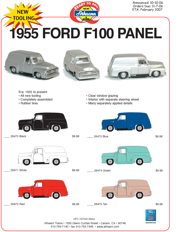 Athearn announced a pair of new HO-scale Ford vehicles this week. Both retail for $9.98 each the most interesting of the two is likely the F100 Panel Van.