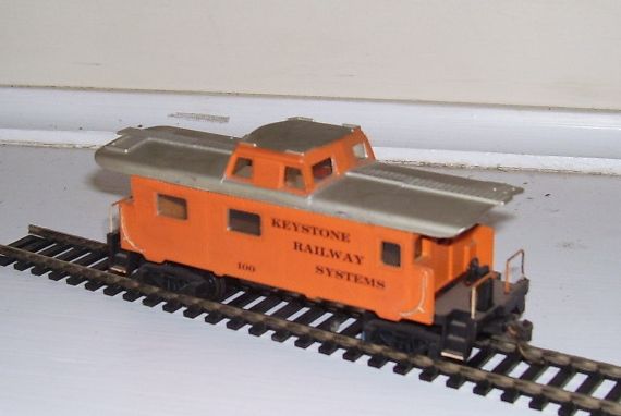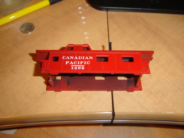 Here's a custom Tyco center cupola PRR style caboose a guy gave me at a train show. It's body is held on only by a tight fit. It has worked fine until I pulled it apart.
