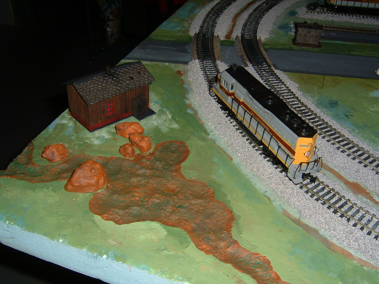 | Looks good, coming along nicely. What are you using to stain the foam for landscaping? It has a neat effect sort of like those prefab plastic layouts from the 50's.