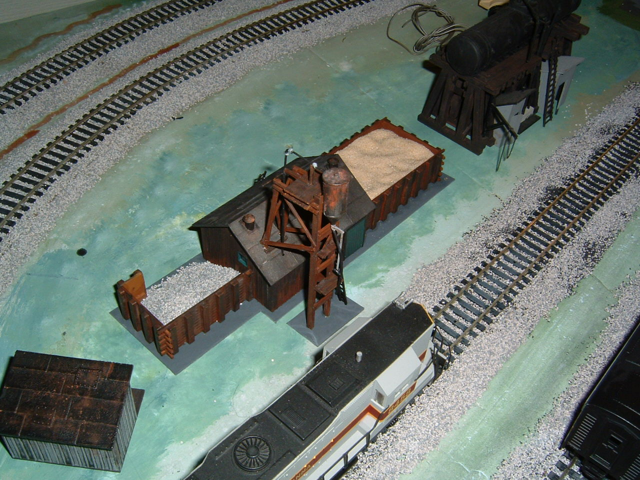 The foam is one inch on the rocks, just stacked and glued as needed, form for the track is 2 in used in insulation of a house... as for the ballast, it was all put down with a little measuring scoop and used several different types of brushes to spread and remove as needed....size is called a medium grade mixed grey that I get from the hobby shop, comes in a bottle or package depending on need, also have other colors and grades that I will be using as the roads,pathways and ground start to get in....ps here are a few new pictures...did a little kitbashing on the sand tower and changed it to a sand and ballast area...it's a left over from the steam period...but thought it went well with the maint. area that I am building..see pictures of little eng. maint. building also that will go in there...thanks for any imput...Garret