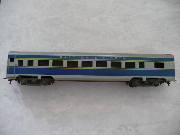 Hello All--Picked this up for a buck this weekend--have absolutely no use for it, other than display, but it seemed really nice. It's a B&O coach, All metal, except for plastic ends. Very nice paint (Lithography?). It has sprung metal trucks, and is equipped with the old style hook-and -loop Mantua couplers. (come to think of it, my British stock my actually hook onto this!). What is it? Super-Old Mantua?