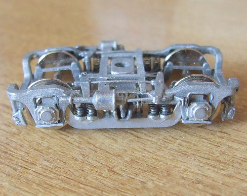 Hi Ken. The truck is Commonwealth Passenger Truck. Made by IHC. IHC #4240 (Walthers Catalog # 348-4240 Black) or IHC #4241 (Walthers #348-4241 Silver). Price $20.98 US for a pair. Walthers has had them on backorder for a while. I do not see them listed any more on the IHC website. You might have a hard time finding them. Walthers has something similar in the Proto 2000 series. They are not as detailed looking as the IHC Trucks. Carl