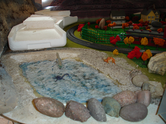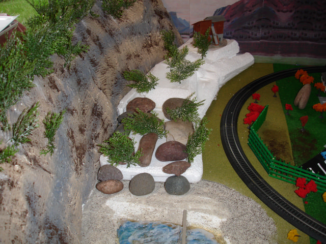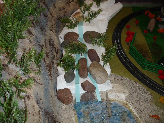 | Great job on your first layout. We all started along that line somewhere in the beginning also. I too --use real rocks. Your pond looks good also[:D]