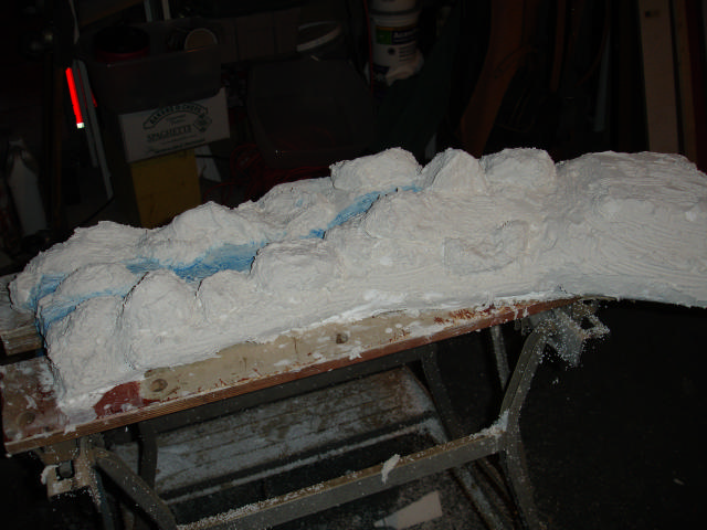 I'm using beaded stryofoam for the base (all shaping done in the garage - since it is so messy)