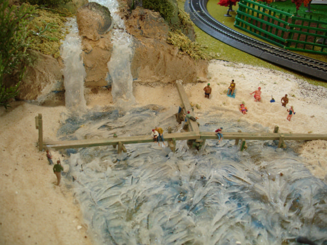 Looking good...you might look for the aqua water stuff that they have at art stores or places that sell foral stuff like patatans also for the water... used in floral arragements..some are two parts and some you boil to use...clear as glass then you see it...works nice depending on the creek or lake...sometimes you have to keep it level or a little angle until it gels up...you can put anything in it before hand like weeds and even fish...keep up th good project...Garret