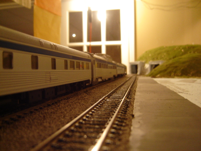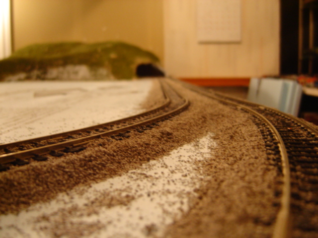 I'm movin pretty slowly but I finally got somemore work done on my layout. This past week I was working on ballasting my track. It was the first time I've done this...the ballast on the back of the layout (which is where i started) came out a little bumpy, but the ballast on the front looks pretty good. I also figured out how to make the platform for my station. I'm going to replace it (it got some water damage when I was spraying the ballast) but now that I know how to do it, it should be easy.