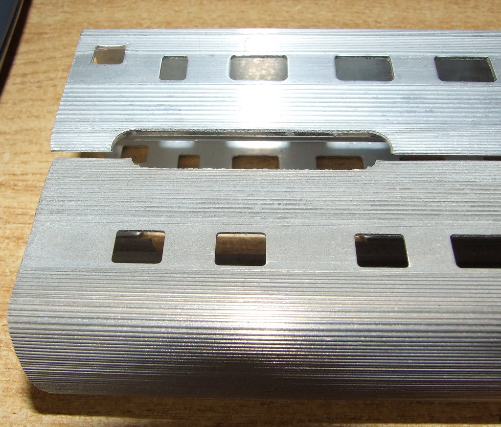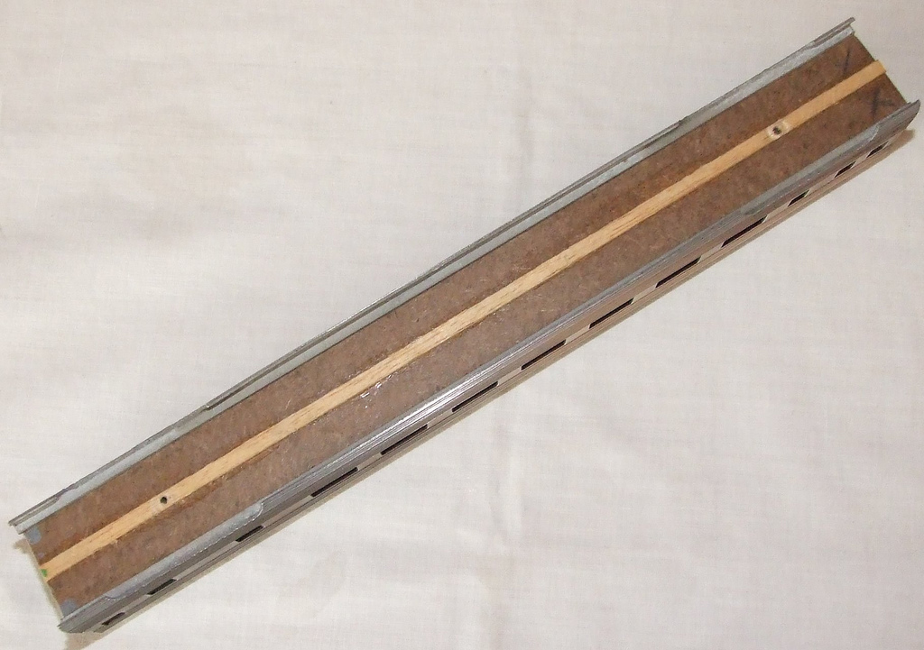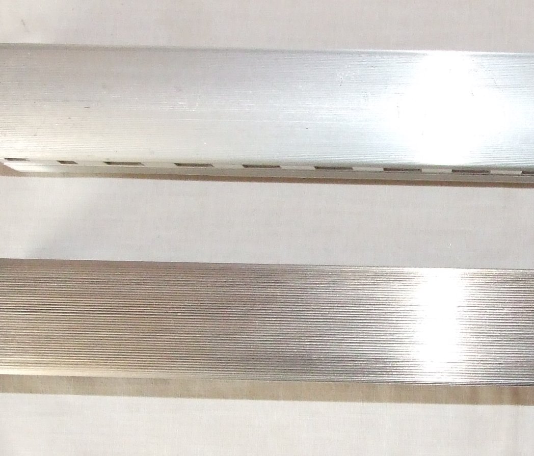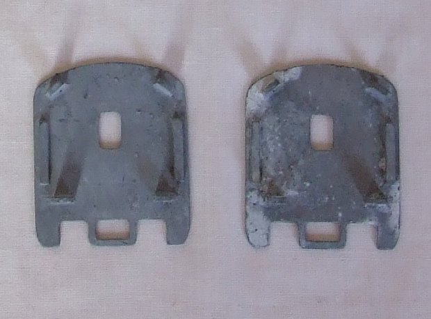 just noticed something,4 are tarnised and weigh 2 5/8 ounces or 74 grams each is an alloy but do not think aluminium and the body sides are thinner,the 4 bright ones weigh 4 1/4 ounces or 122 grams for same length,but all have patent pending on inside of roof ken any recomendations on cleaning the tarnished ones gratefully accepted top one is thicker and heavier,as well as body width being wider,as well as the arches above where trucks would be are different,also the aluminiym ones are very much like silver in colour wheras the others have a brassy tinge