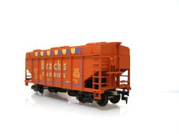 The Brachs hopper has always been the rarest and most desirable of the operating hoppers. It rarely goes for less than $50. It was only made for a couple years and features a three-color paint job on the hopper cap - other so-equipped cars were simple monochrome jobs.
