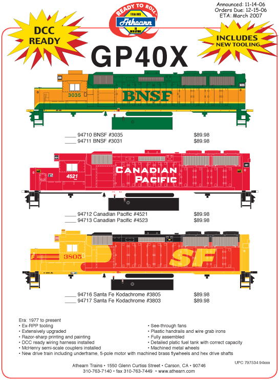 Athearn RTR 2nd Run GP40Xs Annouced 11/14/06