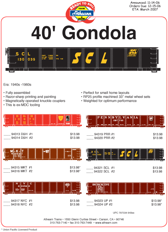 Athearn rolls old MDC 40' Gondola in RTR line...