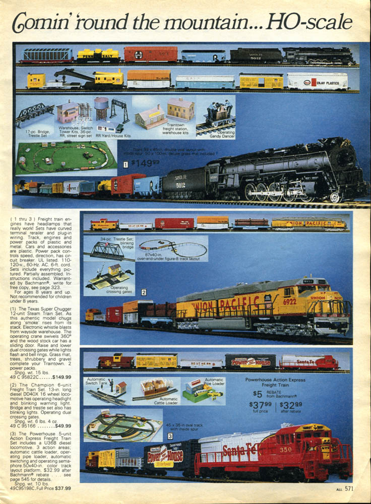 All I am looking for information on some Bachmann Trainsets. I have reviewed the online catologs and cannot seemt to find the sets I had as a kid. Here is a description of the sets.