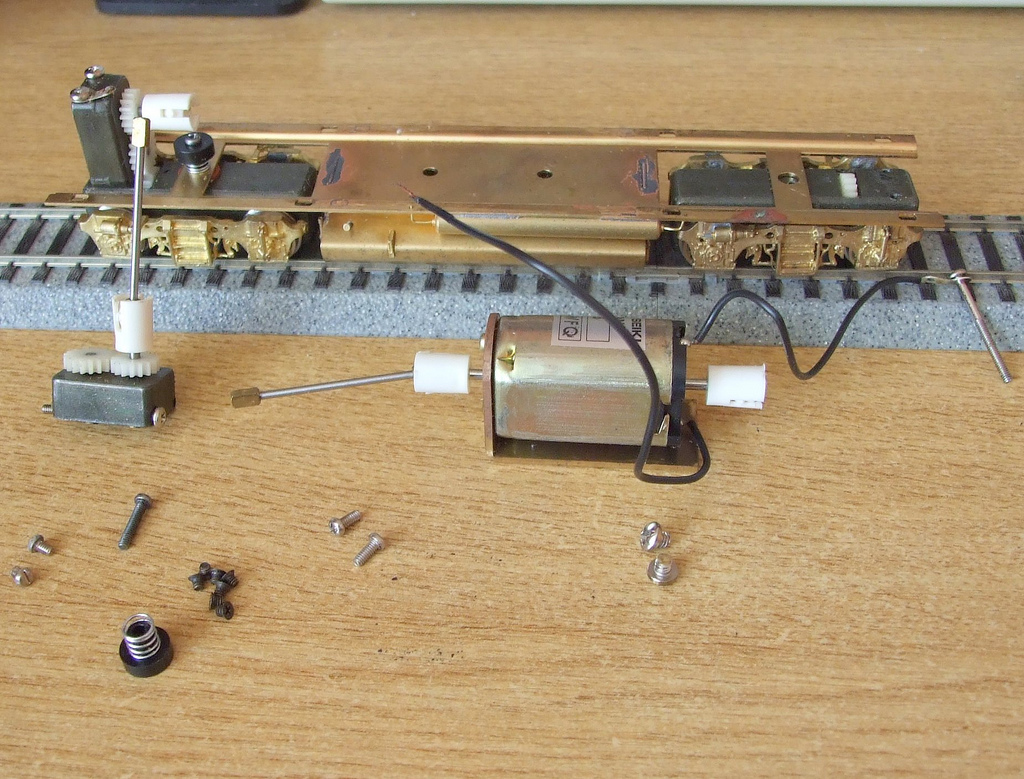 hi guys after trial and error got it apart,no damage caused by me,but the interior tells a few tales,firstly its been repaired by a novice,soldered wires to screw,which needs to be free to access screws to trucks,to adjust movement,and gear maintainance,and one truck was missing insulater between truck and frame,hence non working,but am forging ahead,like a blind man with sunglasses,ken