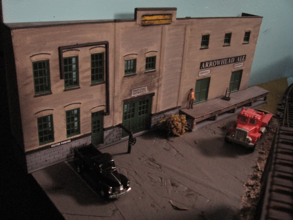 This is a Walthers brewery kit. It's the first building I built myself, and I kinda wish I hadn't smeared black paint all over it.