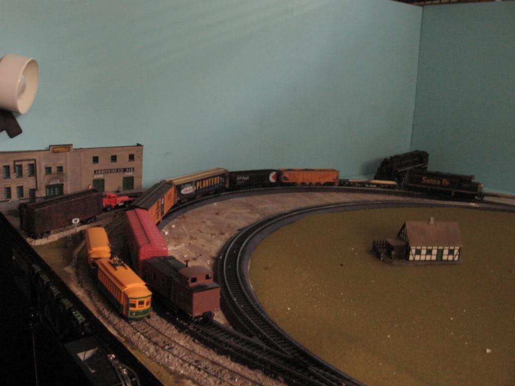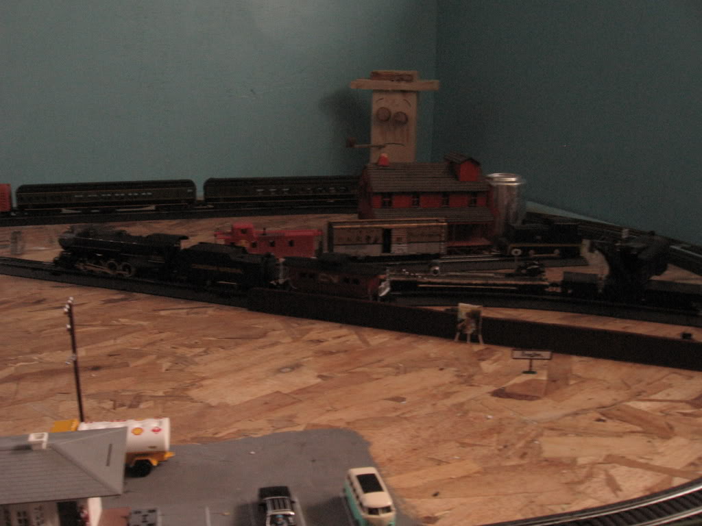There's a freight depot and Woody the scrap wood guy in the background. This track is also seperate from the main line, so I usually put some sort of locomotive there.