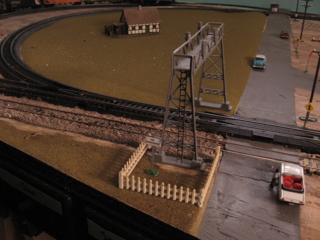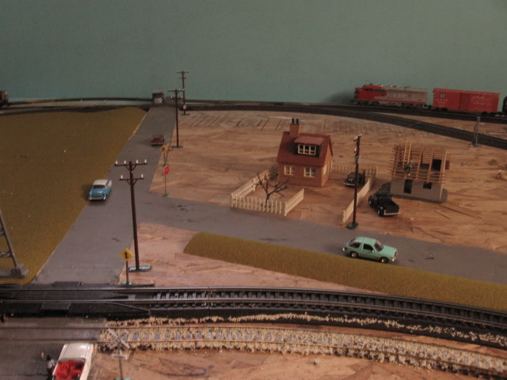 Just a road with some temporary signs and houses. I tried making grade crossings out of dry wall filler, and it worked okay.