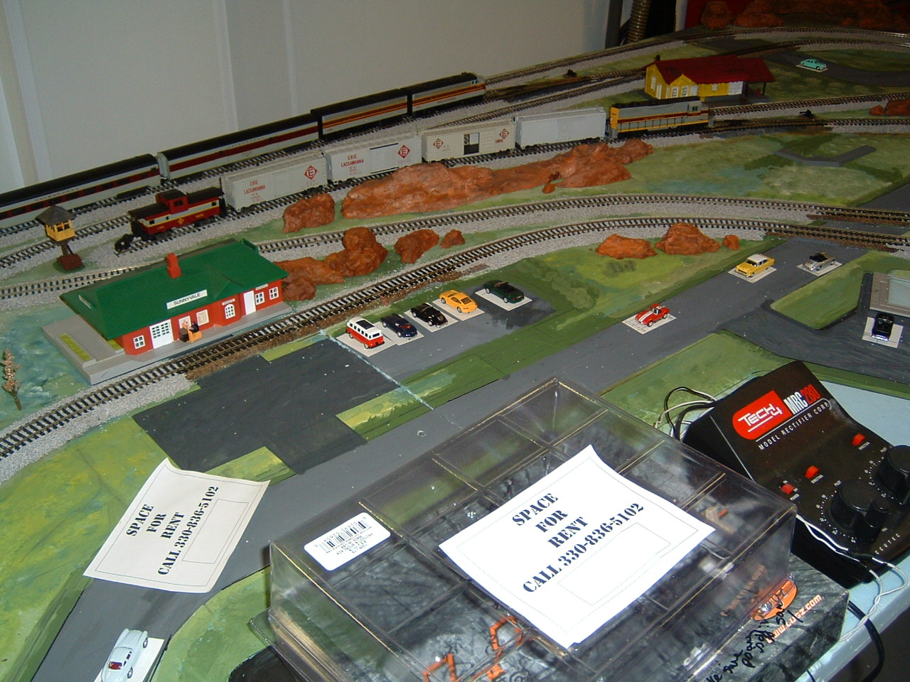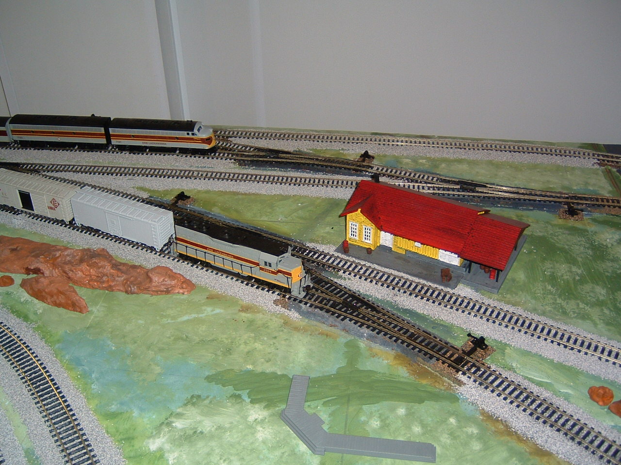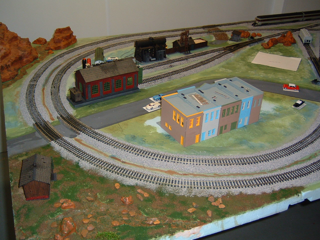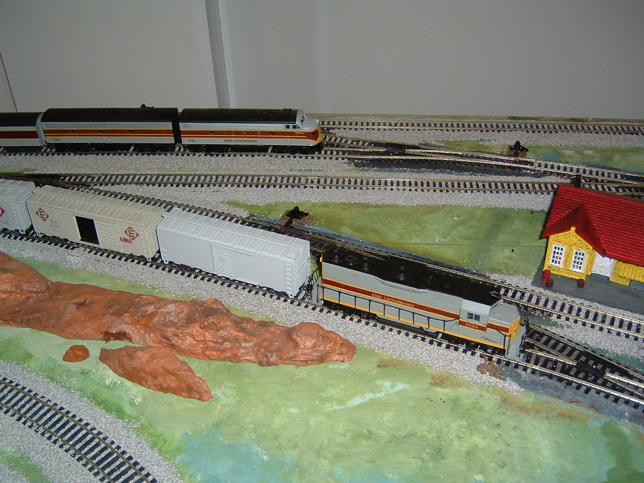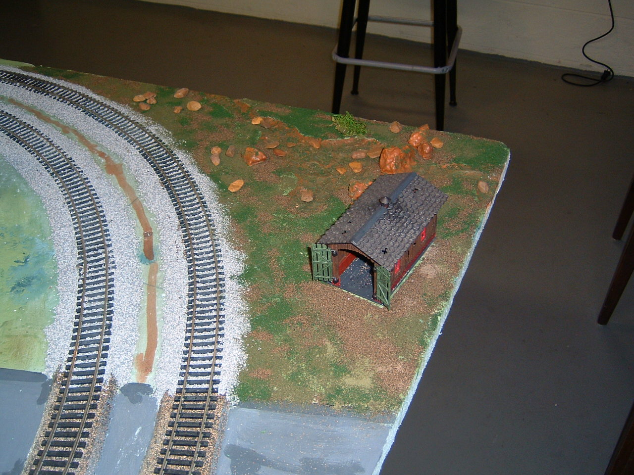 well a little progress on the stoney creek over the summer, hopefully the work crews will return after all their vacations and get some real work done...hope you all like it so far...hope to add a L to the one side and get another 4 by 4 feet so as to lenghten the main track and get a few long sidings in there...the fanged one...garret