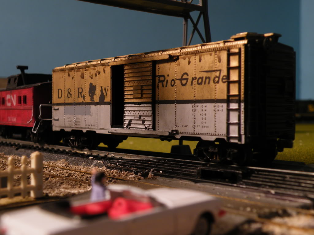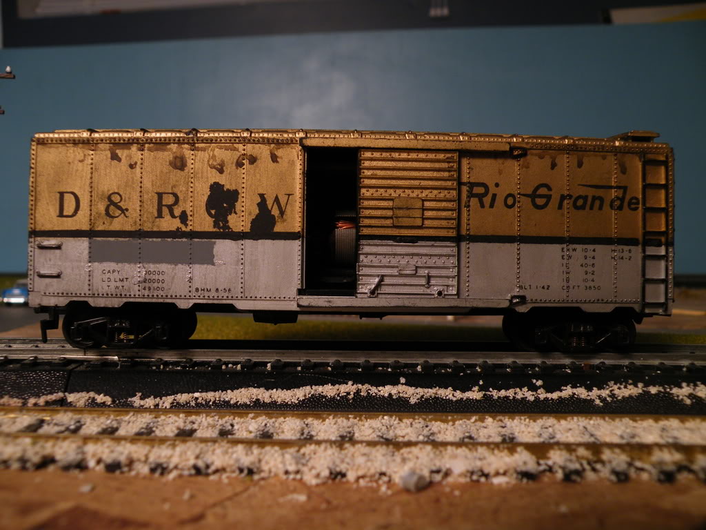DRGW boxcar, I think it was $4. It has sprung trucks, and I put an old electric motor core inside to add a bit of interest. Yet again, this was a practice car for my weathering skills. Not too bad I guess...