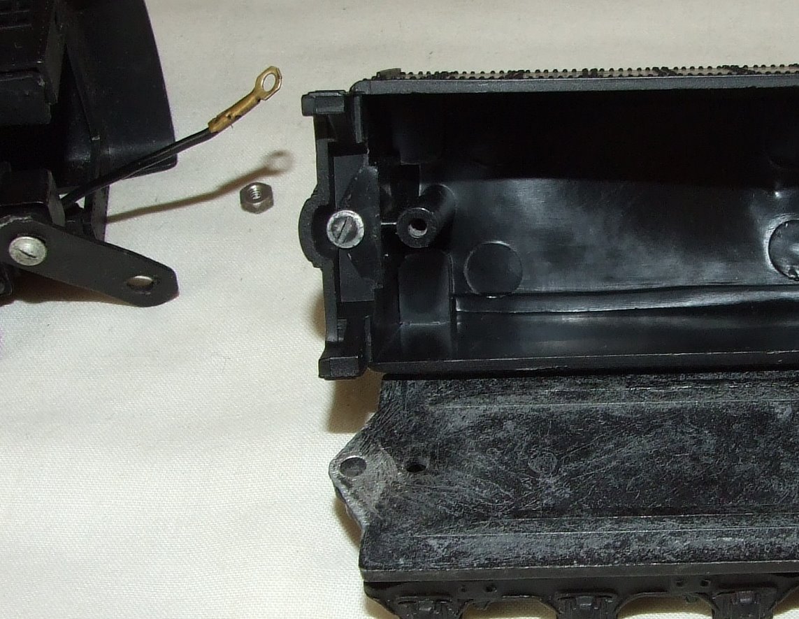 i am trying to improve the electrical contact of tender,as you see its the screw head making contact with that hole at front of frame,cannot srew from frame as this is the other end of the pin that connects the drawbar to loco not much contact has anyone solved this themselves and how ken