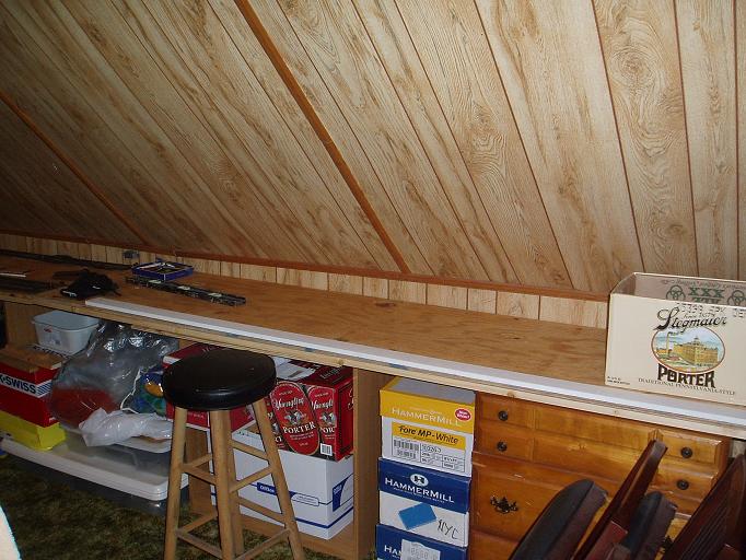 Here you can see the expensive bench work. The board sits on shelving, suported by 1"x6"x8' boards.