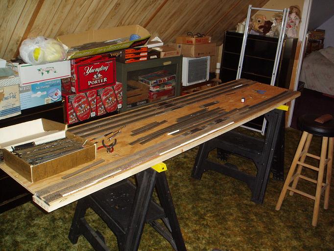 Toptrain...Looking good, don't feel bad about any way that you construct it, my layout is still on 6 of those black A frame carpenter helpers and will be until I am ready to put into actual place... this way I can get to all sides for now...will be that way for years proably..on yours it would be neat if you could make a L shape at one end and have a return loop..just a thought...garret "the fanged one"