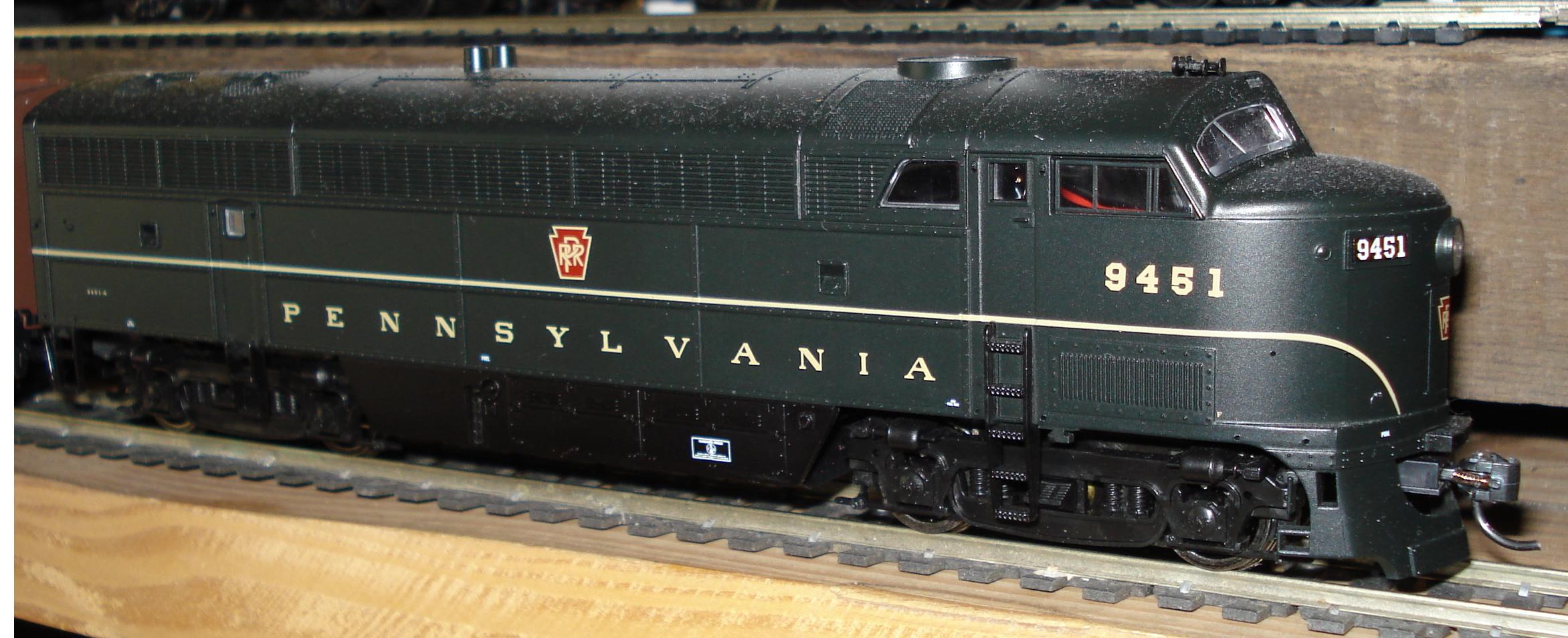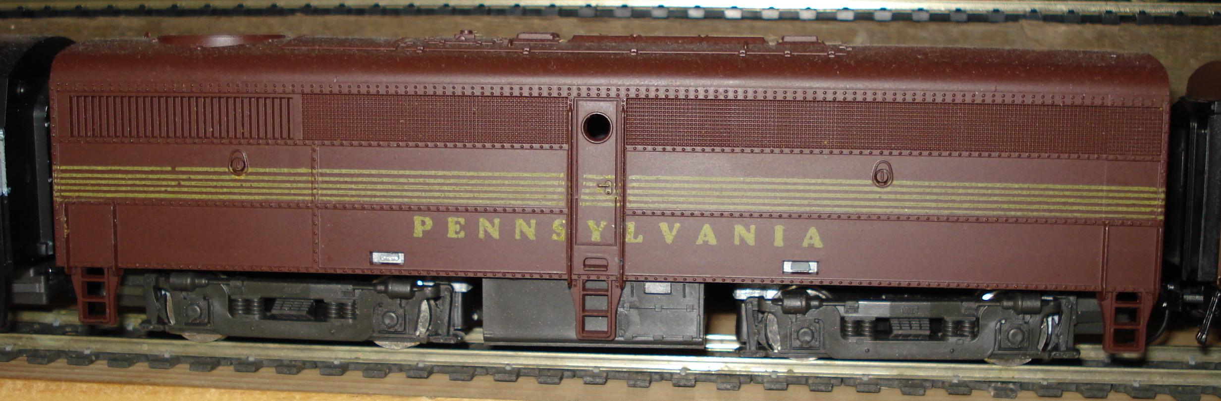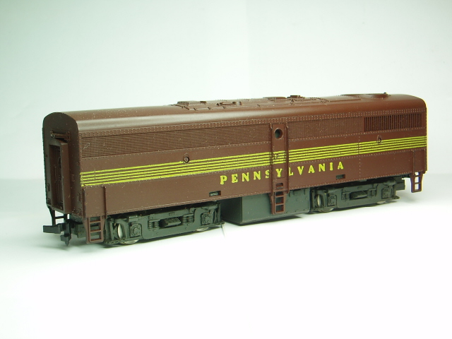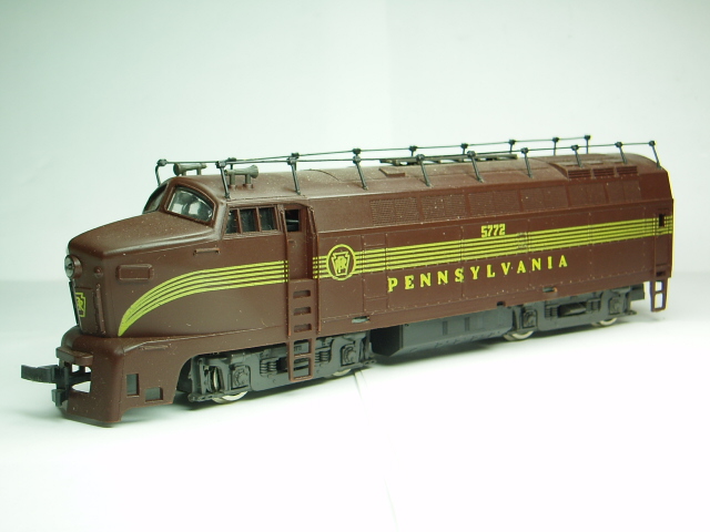 Model Power had six different Locomotives made for them by Roco. The E7a, E8-9a, FA2, FB2, RF16a, RF16b. My intrest is in the Pennsylvania Railroad versions. All but the E8-9a were made in Pennsy paint. The very different thing that ROCO had done to the Pennsy series was the use of the same stencle to decorate them. They all wound up with the same number.